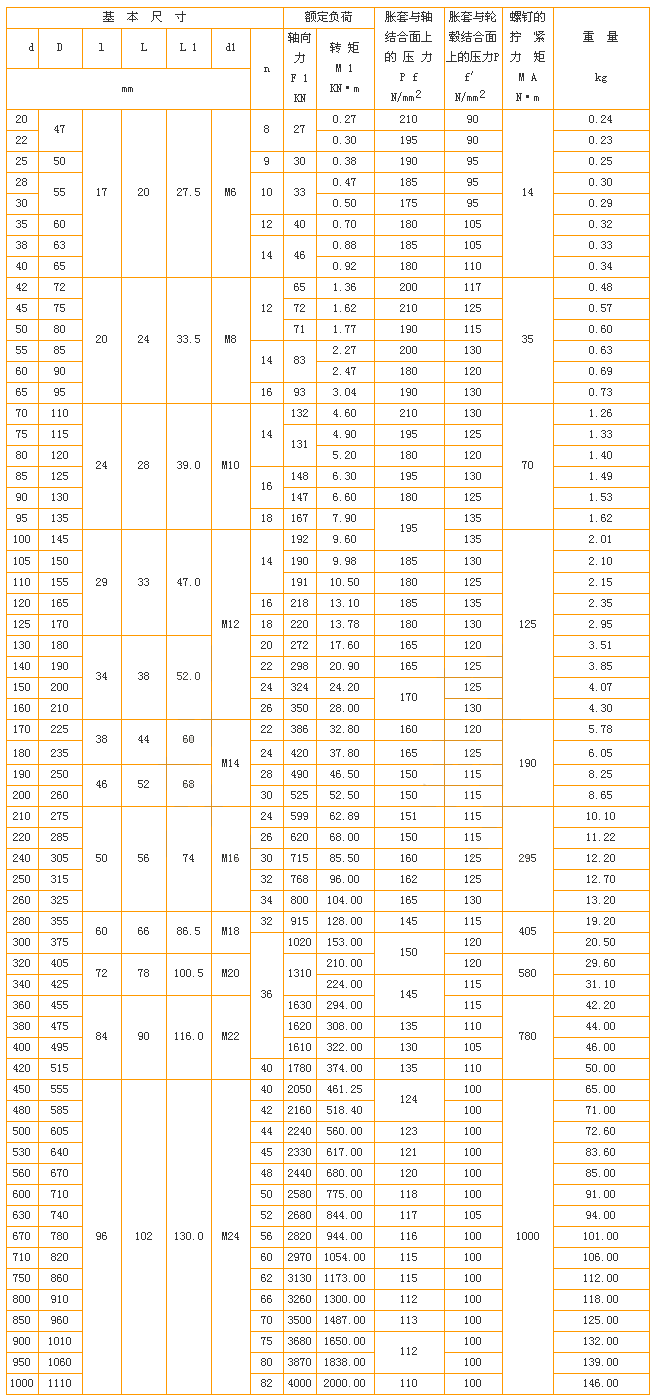 特性:Z2型脹緊套由一個(gè)開口的雙錐內(nèi)環(huán),一個(gè)開口的雙錐外環(huán)和兩個(gè)雙錐壓緊環(huán)組成。用內(nèi)六角螺栓擰緊,擰緊時(shí)彈性環(huán)沒有相對(duì)于軸轂的軸向移動(dòng),與Z1型比較,同樣壓緊力能產(chǎn)生 大的徑向壓力,傳遞 大的載荷。為便于拆卸,在一個(gè)壓緊環(huán)上有拆卸用螺孔,沿圓周共有2~4處。鎖緊聯(lián)結(jié)盤廣泛應(yīng)用于包裝、印刷、紡織、機(jī)床等機(jī)械上。