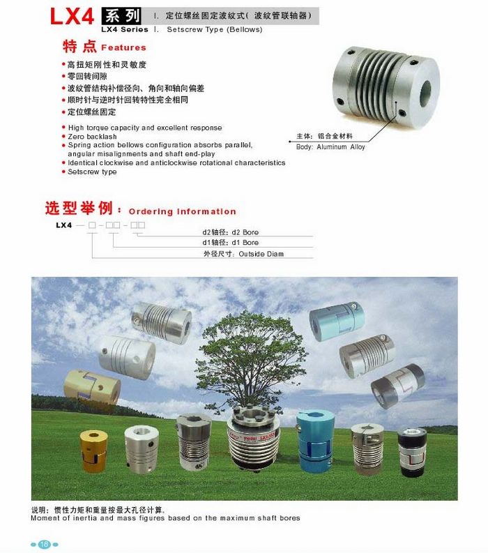 波紋管聯(lián)軸器是用外形呈波紋狀的薄壁管(波紋管)直接與兩半聯(lián)軸器焊接或粘接來傳遞運(yùn)動(dòng)的。這種聯(lián)軸器的結(jié)構(gòu)簡單,外形尺寸小,加工安裝方便,傳動(dòng),主要用于要求結(jié)構(gòu)緊湊,傳動(dòng)精度較高的小功率機(jī)械和控制機(jī)構(gòu)中。波紋管的材料為銅合金(如錫磷青銅QSn6.5-0.5 )和不銹鋼(Cr18Ni9Ti)。