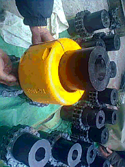 ●特點:鏈條聯軸器是利用公用的鏈條,同時與兩個齒數相同的并列鏈輪嚙合,不同結構型式的鏈條聯軸器主要區別是采用不同的鏈條,常見的有雙排滾子鏈聯軸器、單排滾子鏈聯軸器、齒形鏈聯軸器、尼龍鏈聯軸器等。雙排滾子鏈聯軸器性能優于其他結構型式的聯軸器,為 廣泛采用,我國亦已制訂為 標準。